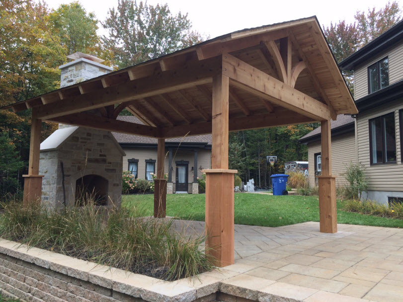 Entrepreneur à Laval en conception et construction sur mesure de Terrasse, Patio, Pergola, Gazebo en bois traité, cèdre rouge ou composite TimberTech ou Trex.